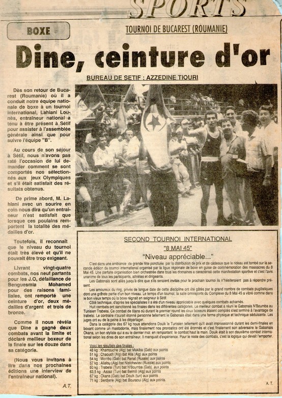 Au bout de quelques années, ses louables efforts seront récompensés par l'émergence des premiers champions qui s'imposèrent avec un style particulier. Nombre d'entre eux renforceront l'équipe nationale. Le dernier de la lignée sera Ahmed DINE, champion du monde militaire, médaillé d'or aux jeux méditerranéens d'Athènes et privé scandaleusement de la médaille d'or aux championnats d'Afrique en Egypte par des arbitres sans scrupules.