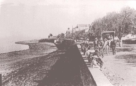Certes, et notamment par mauvais temps, la rue principale du "village", Grande Rue, avec sa multitude de commerçants Européens, était beaucoup plus animée; mais aux beaux jours, les promeneurs se retrouvaient sur le boulevard surplombant les voûtes et c'était un incessant va-et-vient entre l'hôtel de la Plage et l'école de pêche.